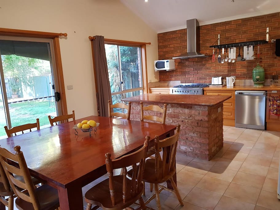 Affordable spacious accommodation located in a quiet court setting just metres to Rail Trail Cafe, Punkah Pub, and nearby Punkah Pantry & Local Roadhouse. Pedal just 6 kilometres along the Murray To Mountains Rail Trail to Bright. Relax and unwind in this spacious and comfortable 3 bedroom ‘home away from home’. Cyclist and family friendly with excellent indoor and outdoor cooking facilities, comfortable beds and couches & beautiful land at the rear with easy river access.